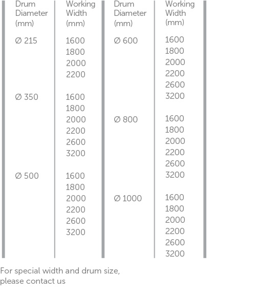 - Cylinder widths from 1600 up to 3600 mm